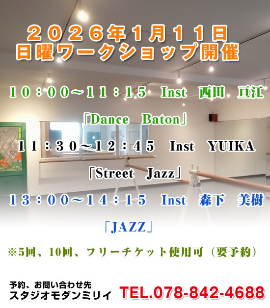ダイエットの為、運動不足解消、身体矯正、オーディションを目指す人・・・目的はそれぞれです。最初は心配なこともあるでしょう。でも始めてみるとそんなことは嘘のように幼児から中高年の方までみんな元気にスタジオでダンスを楽しんでいます。